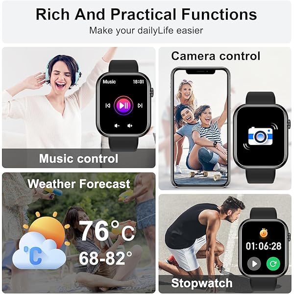2 Watch Straps, 2 Wearing Styles: Smart watches for women men adopts a larger screen design, and come with two watch bands of different colors.(Receive/Dial) and message notifications can be displayed directly on screen. Smart watch for android phones contains many dials readily available to choose from along.You can also DIY watch faces with your own photos. Smart watch for iphone compatible can be any photo,such as your family,pet,et.ios android watch for men women help exercise scientifically.